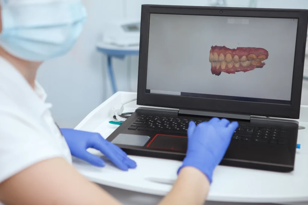İlk adım, dişin dijital modelinin oluşturulmasıdır. Bu, dişin 3 boyutlu bir tarayıcı kullanılarak dijital bir modelinin oluşturulması veya dişin dijital olarak çekilmesi yoluyla yapılır.